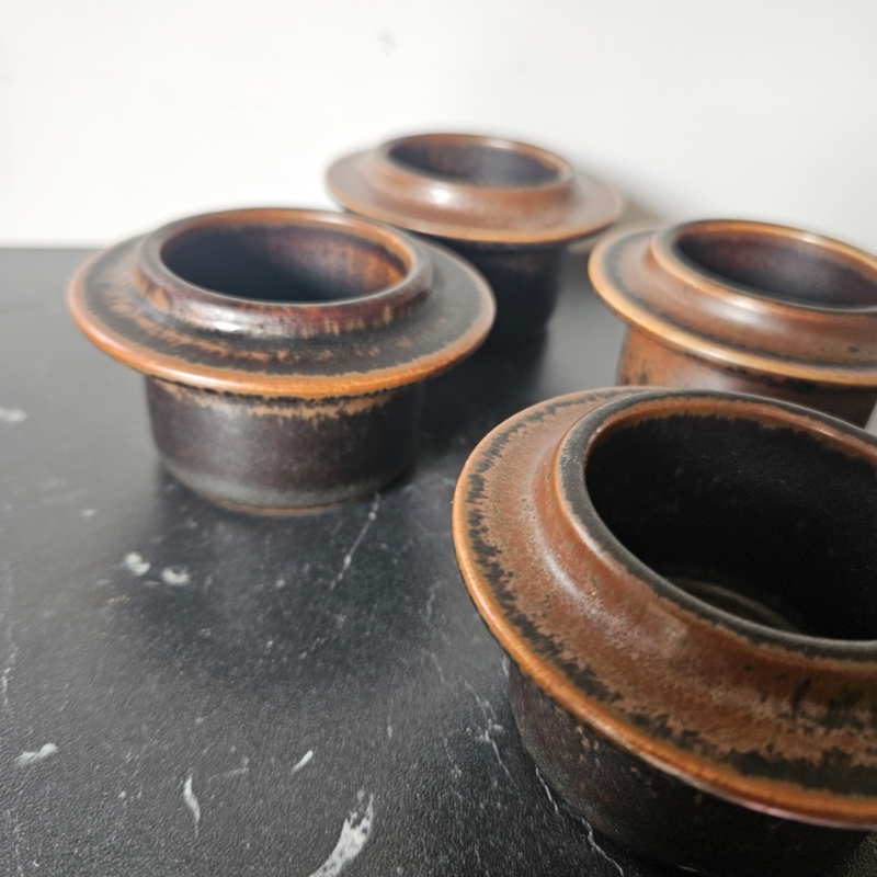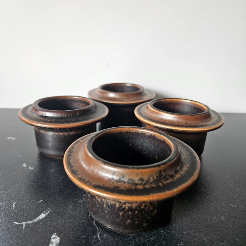 Een set van 4 eierdopjes van Arabia uit de serie Ruska.