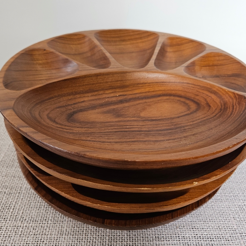 Stoere mooie houten vak/ fondueborden. Met een 5 klein en1 groot vak kun je het eten goed van elkaar houden.
