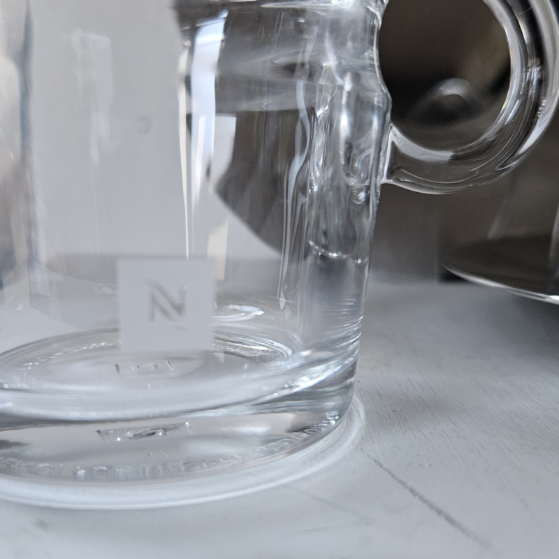 Prachtige set van een glazen koffiekop met een RVS schotel. Uit de serie van View van Nespresso.
