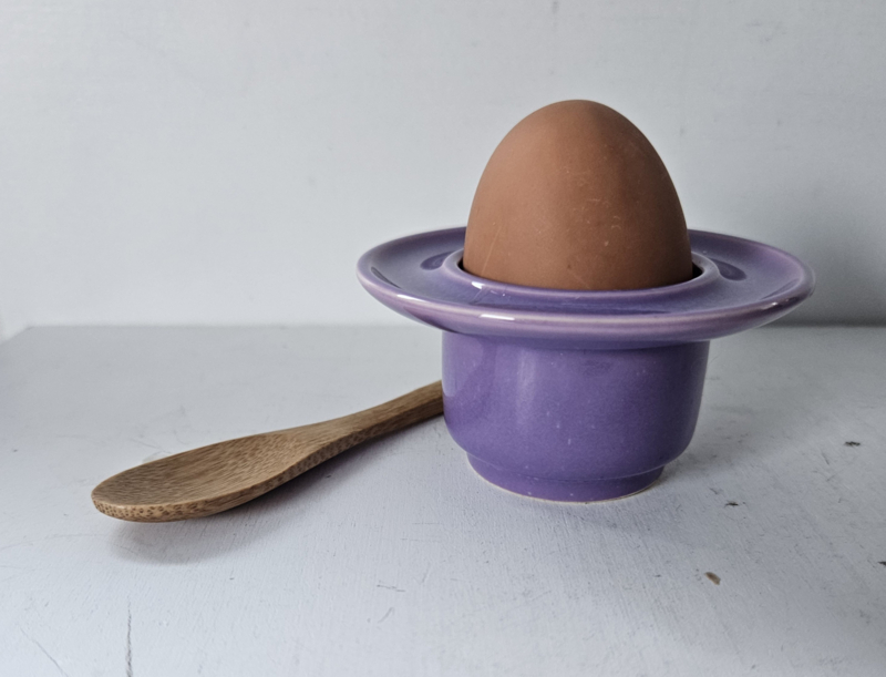 Mooi glanzende eierdop van Driehoek Huizen Keramiek in helder donkerblauw.