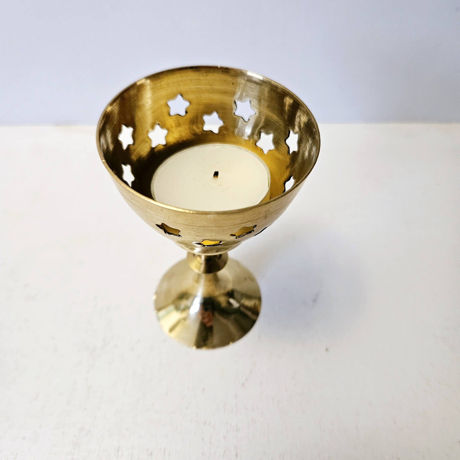 Kleine waxinelichthouder met open gewerkte sterretjes.