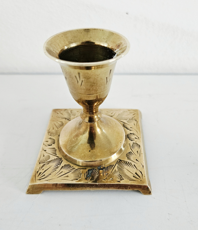 Messing kandelaarKleine messing kandelaar met een 4-kanten bewerkte voet.